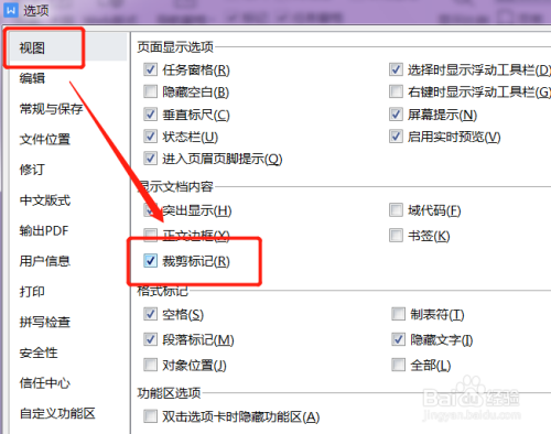 word页面将四个角的直角显示出来的话,需要在文件下的选项,将视图下的剪裁标记勾选即可显示。