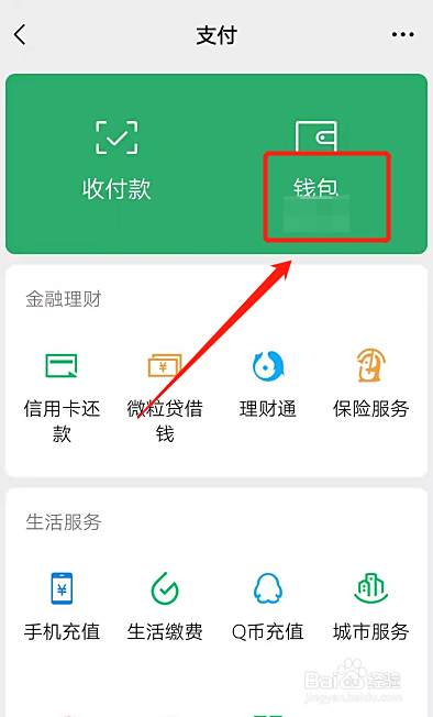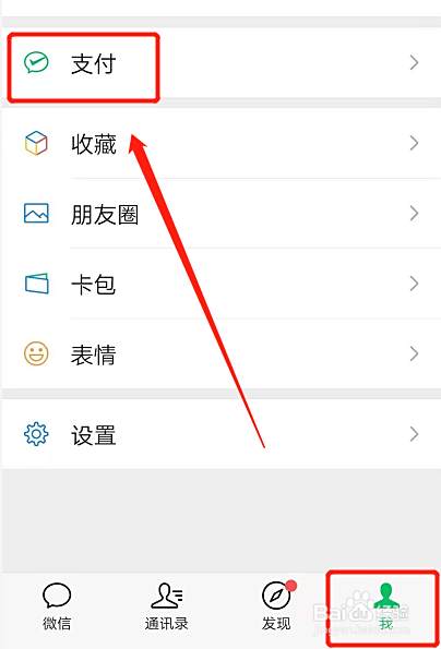 在微信我的页面点击支付。