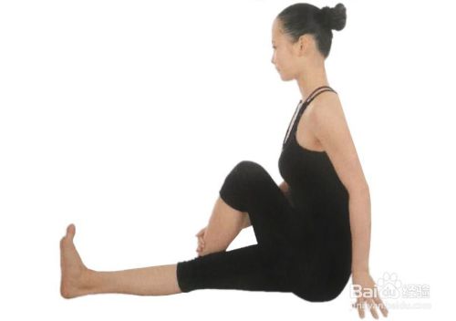 坐在地面上,双腿向前伸直,屈左膝,左脚抬升,跨过右腿,脚掌贴地,小腿绷直.左脚脚踝与右膝外侧相靠。