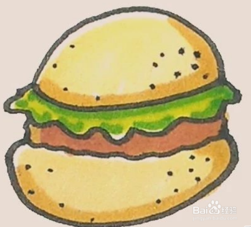 第五步为牢驾汉堡包简笔画涂上色彩。