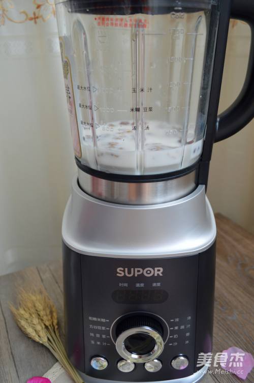 3启动破壁机,选择粗粮米糊功能后按开始。(为保留干果的全营养,核桃和榛子没有经过提前炒制和去皮)