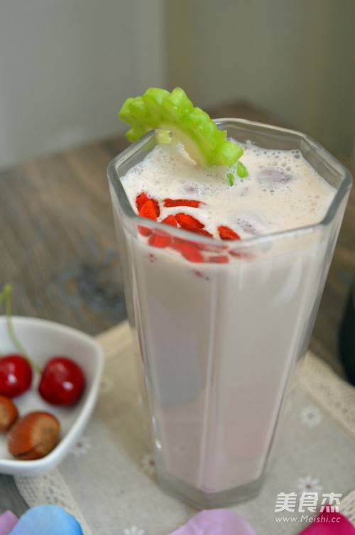 5将打好的核桃榛子露倒入杯中,上面放入煮好的薏米和另一半的榛子,点缀少许枸杞子,一杯香浓可口的养生饮品就制作完成啦,是不是非常简单易学呀!