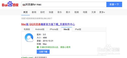 首先我们下载一个qq浏览器,你在百度搜索中搜索qq浏览器for Mac就可以,搜索出来的第一个就是官方下载。