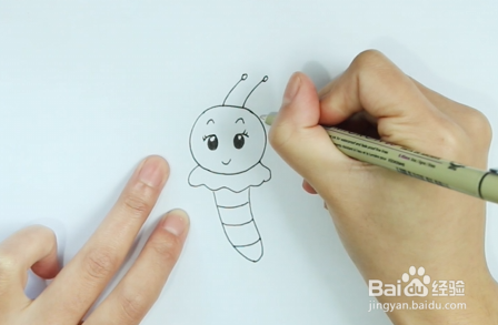 首先画一个圆圆的脸,顺着把蝴蝶的身体画出来;