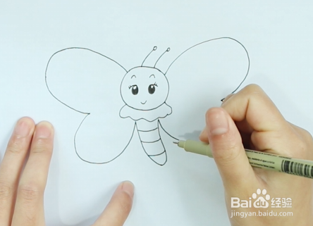 接着将蝴蝶的眼睛、嘴巴、眉毛和触角画上;
