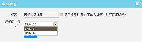 图片尺寸分为“120×120”和“160×160”,亲可以根据自己实际情况而选择图片大小,不过,在没有特殊情况下建议您使用“160×160”的图片尺寸。