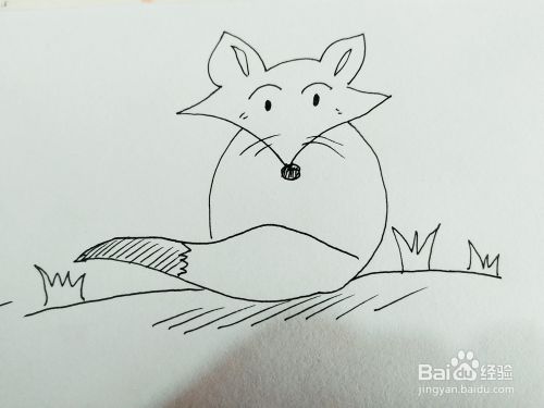 第七步,我们来画卡通小狐狸的身体下方的土地线条,如下图