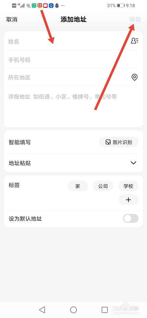 来到添加地址,然后按指示填写自己的地址,再点击【保存】即可。