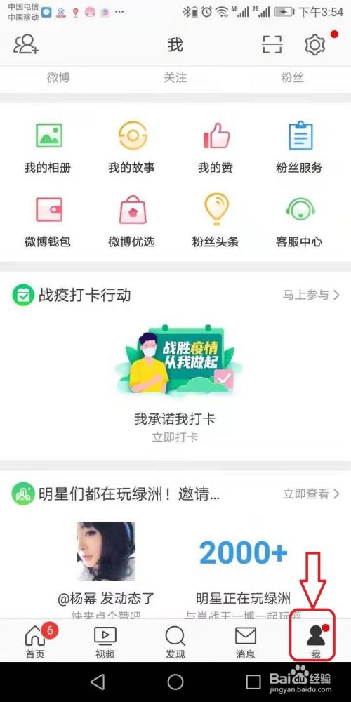 打开手机微博,进入到主页,点击我的,如图。