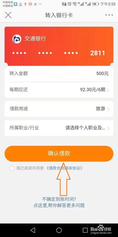 进入后,确定收款银行,确认信息无误后,点击确定,点击确认借钱,借款取现完毕。