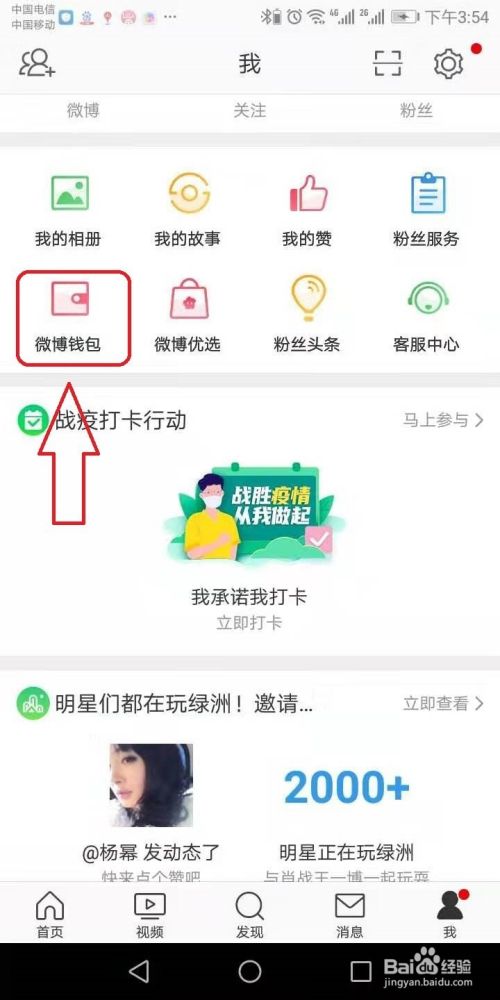 进入后,点击微博钱包,如图示,点击进入。