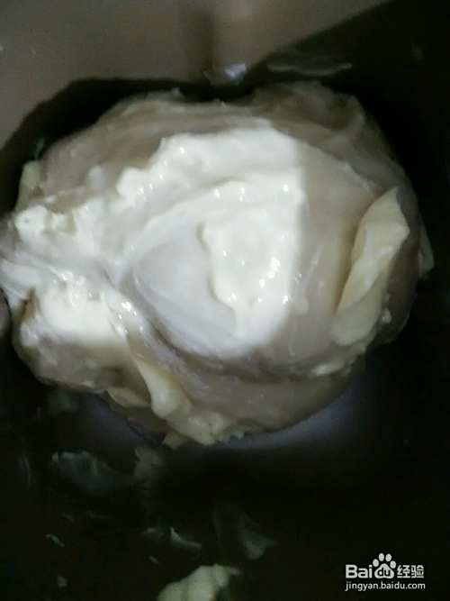 把除黄油外所有材料混合放入面包机,揉至面团扩展