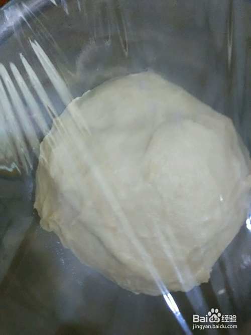 和好面从面包机取出放入面盆盖上保鲜膜进行发酵