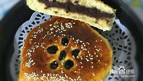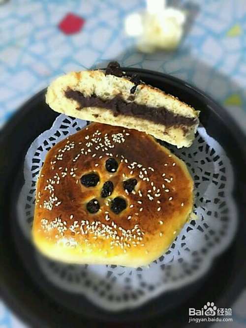 松弛好的面团用擀面杖擀成薄薄圆饼放豆沙馅,再擀另一个饼片,两个和在一起捏紧口