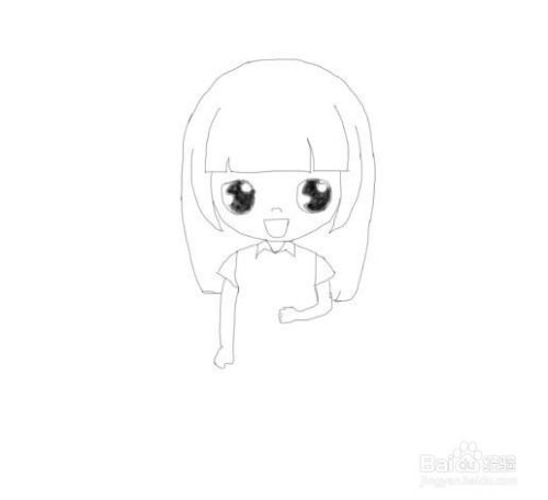 画好美女老师的头部之后,我们再画出美女老师的两只胳膊及手部,如图所示: