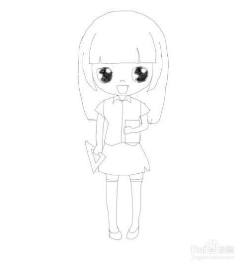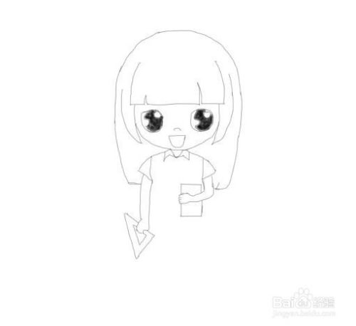 再在美女老师的手部上分别画出手里的三角板及手里的课本,如图所示: