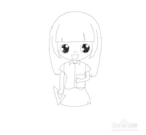 再在胳膊的基础上我们再画出美女老师的裙子及裙子上面的细节,如图所示: