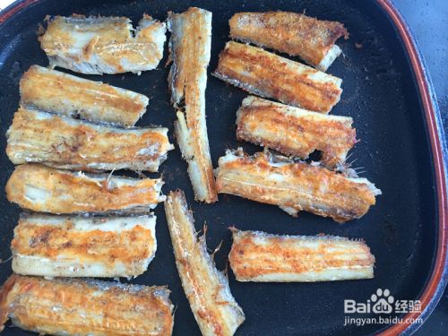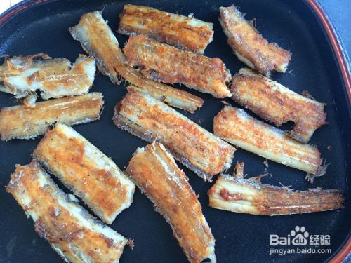 把刀鱼的两面都煎至金黄后,改小火再两面翻转的煎5分钟,一直到刀鱼变得酥脆,就可以关火了。