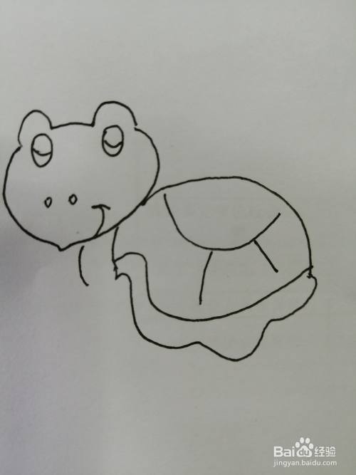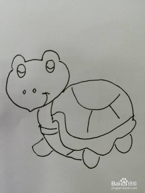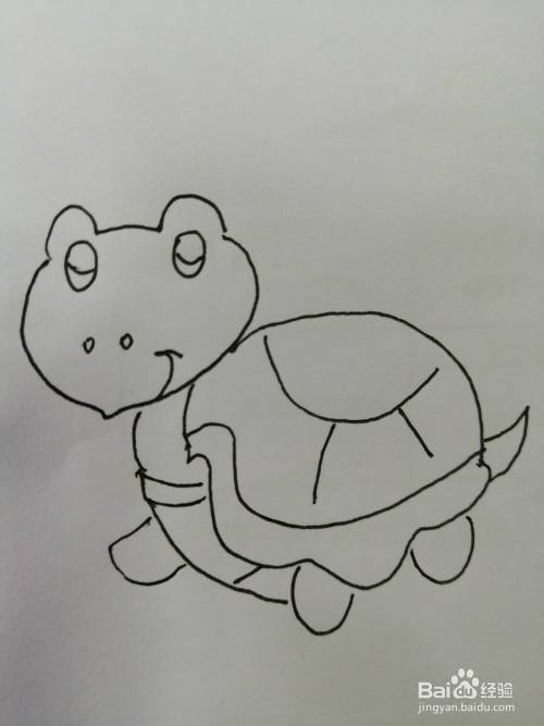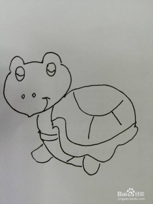 第七步,最后把可爱的小乌龟的小尾巴画出来。可爱的小乌龟就画好了。