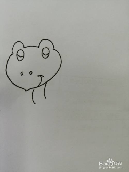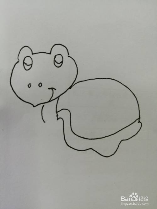 第三步,在可爱的小乌龟的眼睛下面画出两个小椭圆,小乌龟的小鼻子就画好了。
