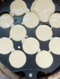 之后调成小火,倒入面糊。