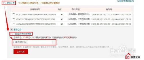 3) 积分兑券后,您的“使用红券”一栏中会自动显示您门店积分兑换成的红券