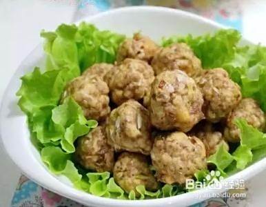 把搅拌好的肉末一个个揉成自己喜欢大小口感的圆团,也可以发挥你的创意,揉成2小1大的后面可以组合成米奇,或者放入爱心形状不锈钢模型变成爱心的肉丸子