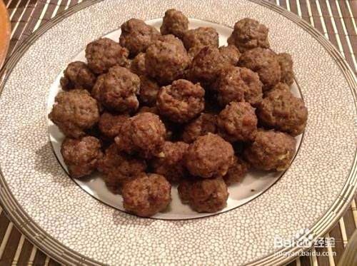 剁碎的牛肉,加入拇指大小姜末、15ML黄酒去腥,放半汤勺鸡精,5g胡椒粉,约15毫升酱油,半汤勺盐加鸡蛋,再加10g玉米粉