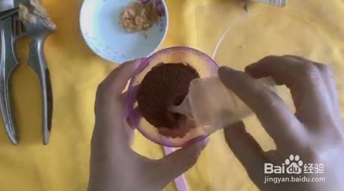 将15g耐驰奥海藻颗粒倒入面膜碗中,并将收集好的50ml新鲜苹果汁倒入面膜碗中。快速搅拌,将海藻颗粒释放大量的海藻胶,与苹果汁充分的融合在一起。