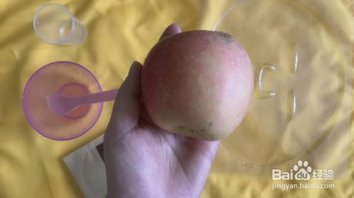 把耐驰奥海藻面膜、苹果和其它工具都摆放好。
