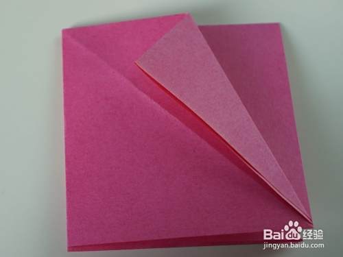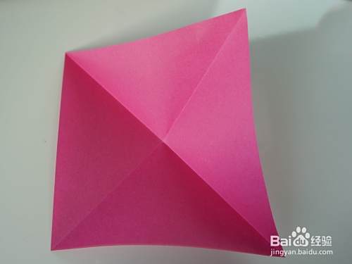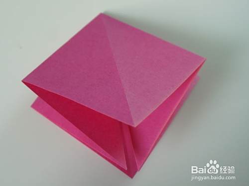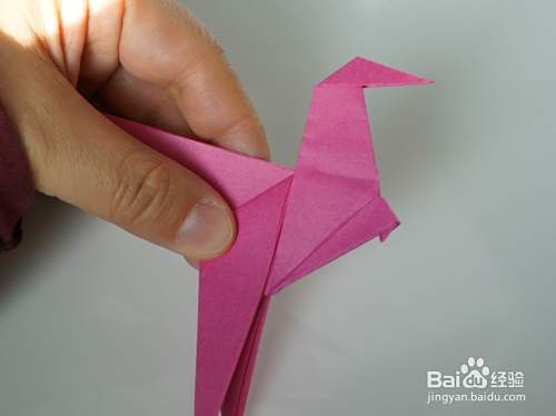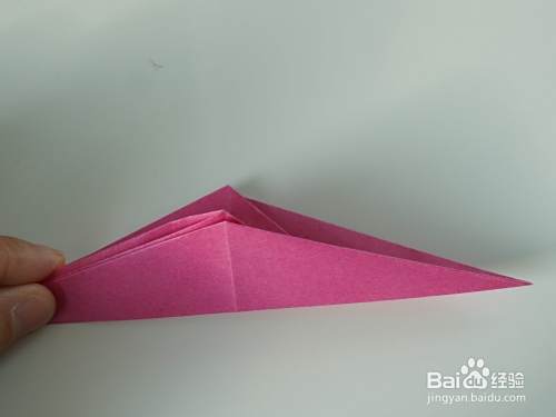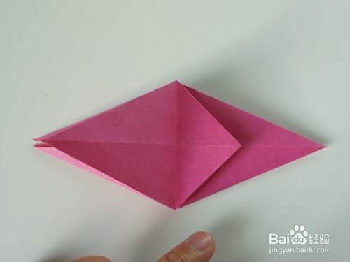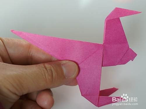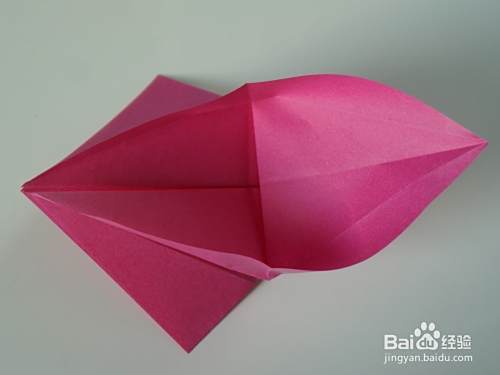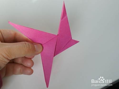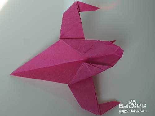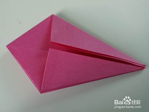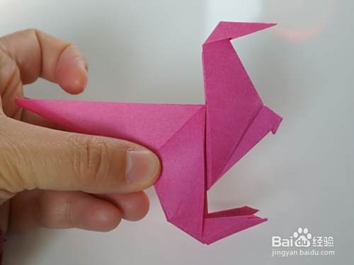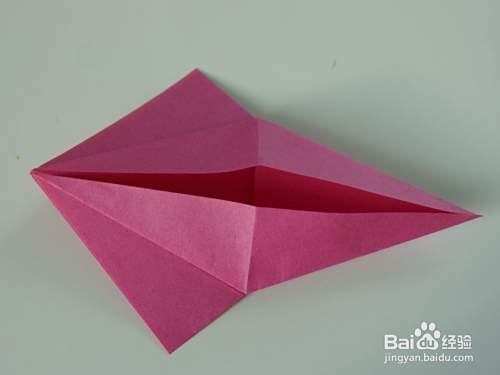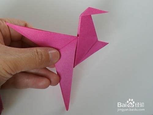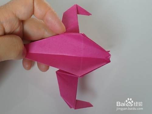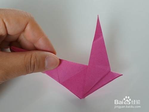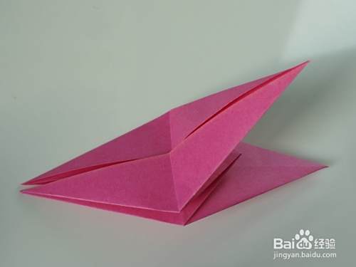另外有三个角那一边,将外面的两个角沿中线向下向外折,成两条腿。