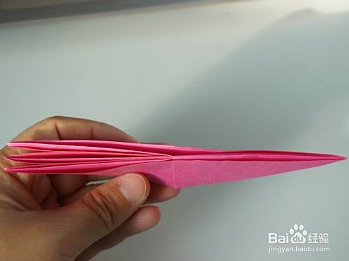 打开一边的两个角,拉开,折成长角。两边都一样。