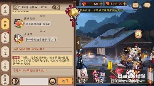 在阴阳师游戏中召唤式神时,觉得频道人太多,感觉召唤成功的几率不大,想换一个频道去召唤,应该怎么做呢?别慌,接下来小编就教大家怎么在阴阳师游戏中切换频道,请看详细经验。