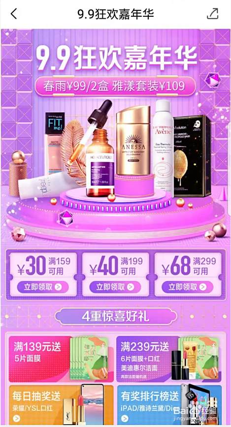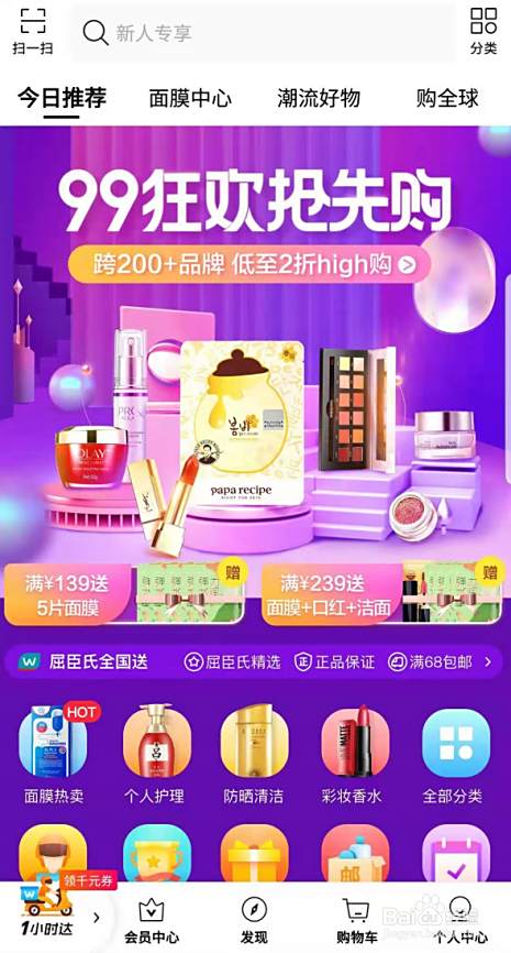 第二步:以屈臣氏官方商城为例,在商城主页获取活动信息,以图中的“99狂欢抢先购”活动为例,点击进入到活动主页;