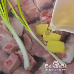 排骨冷水下锅,加姜葱料酒,煮出浮沫在捞出备用