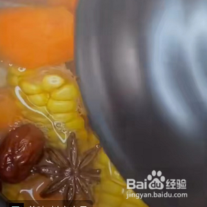加玉米,胡萝卜,红枣,八角,在倒入热水