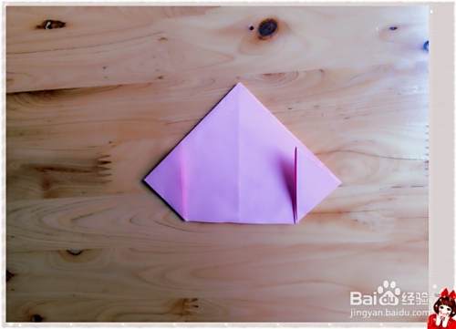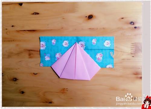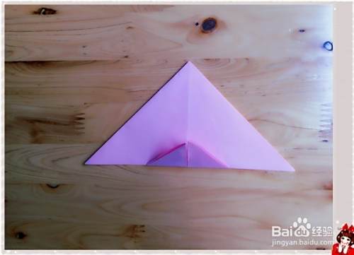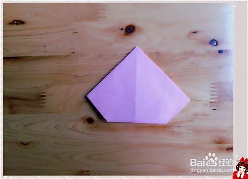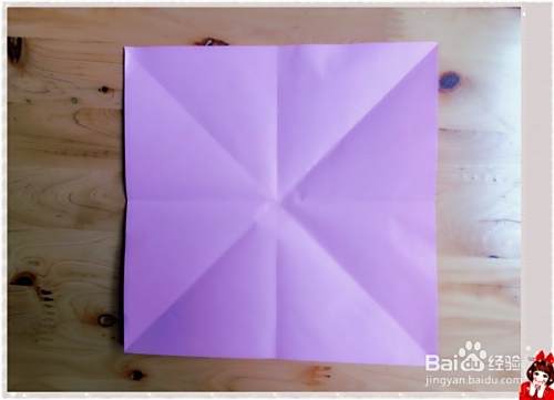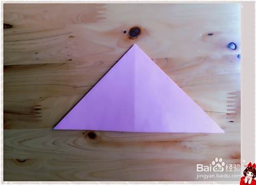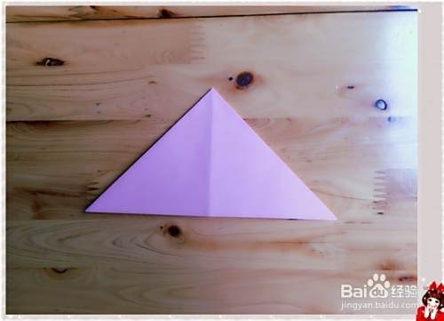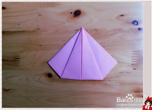 以正方形的中心为顶点,按照折痕压成这样的三角形。