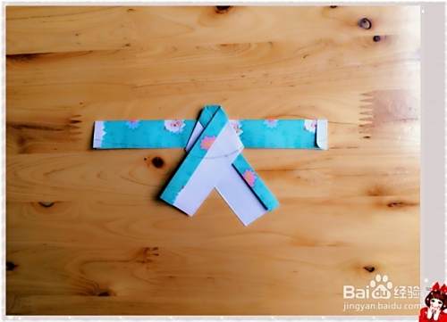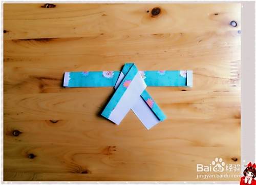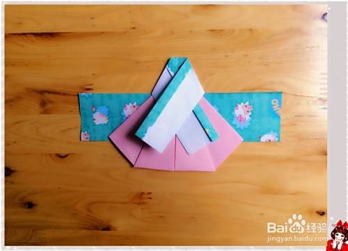 再把领子两边的袖子对折,再往上翻折,就如同图中的样子。
