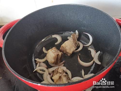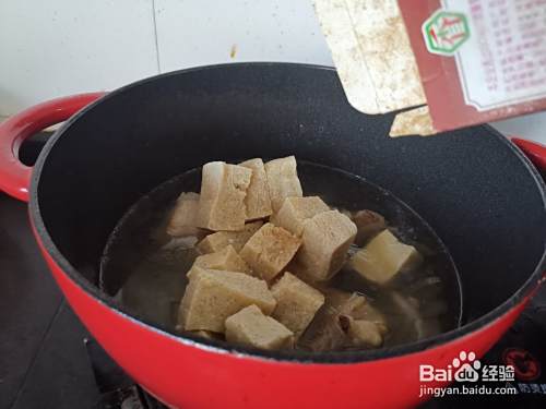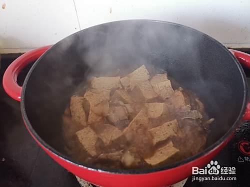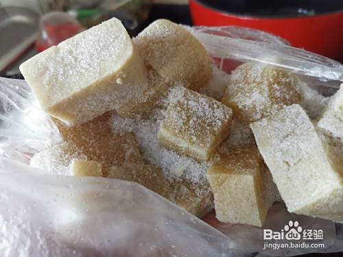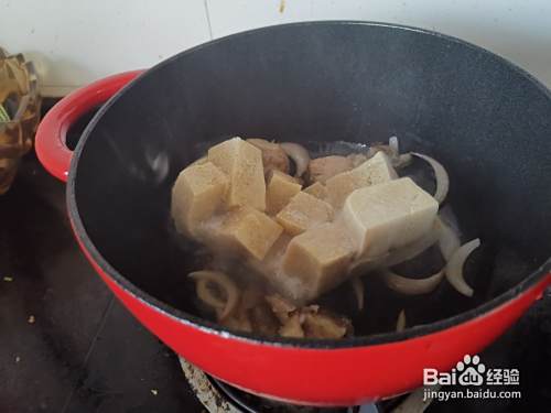 洋葱下锅炒香,后下入冻的老豆腐翻炒