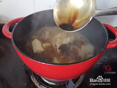 加入一勺生抽倒入锅中继续大火炖煮,炖至汤汁收干