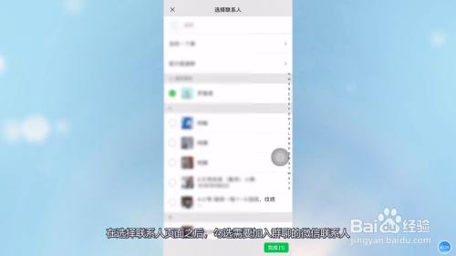 在选择联系人页面之后,勾选需要加入群聊的微信联系人,选择好之后点击右下角的完成按钮。