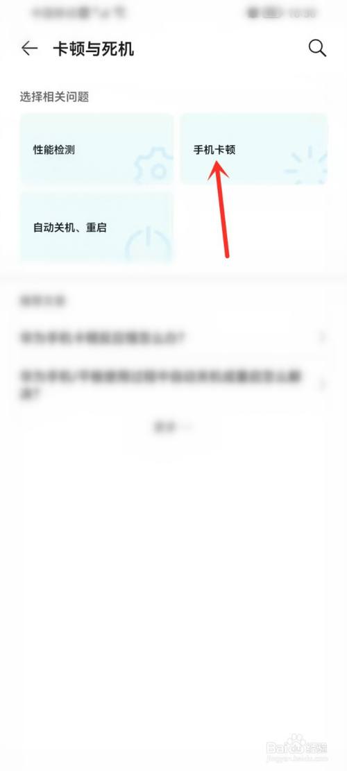 点击“手机卡顿”选项。