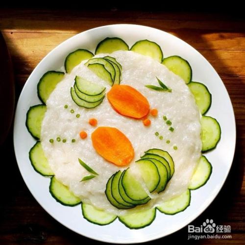 放入盘中摊平,盖上保鲜膜放冰箱保存,用胡萝卜和黄瓜装饰一下。