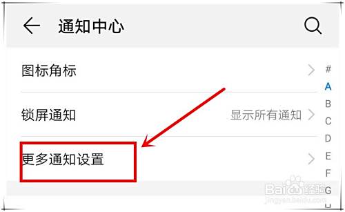 华为手机呼吸灯设置第三步:在打开的通知中心页面中,点击“更多通知设置”。