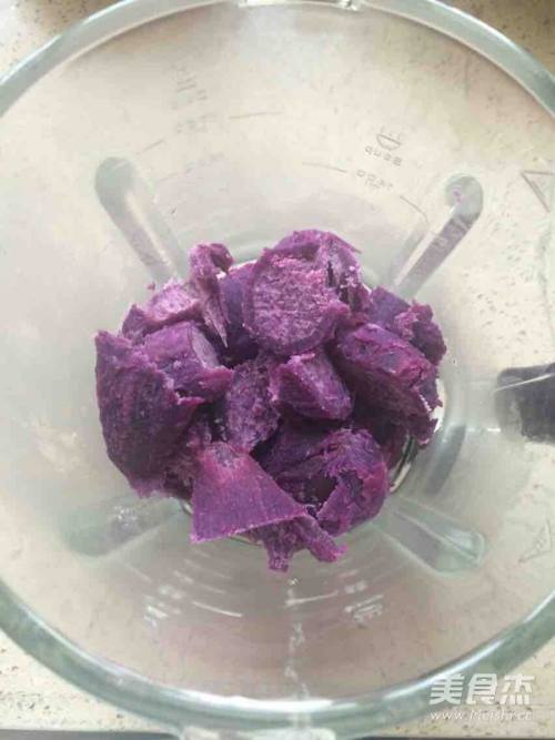2蒸熟的紫薯晾凉、去皮、切块放入破壁机。