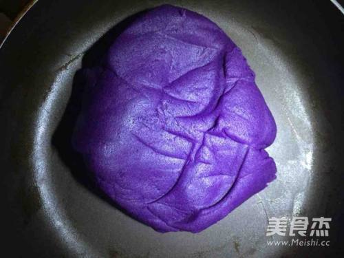 5喜欢甜一点,保存时间久一点的,则在平底锅加入食用油、紫薯馅、白糖,小火翻炒至白糖熔化,食用油吸收即可。