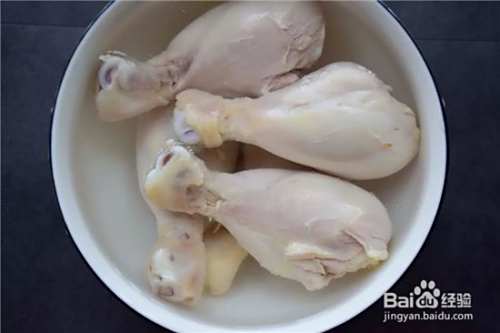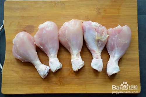 第一步,将鸡腿的皮去掉,只留鸡腿肉