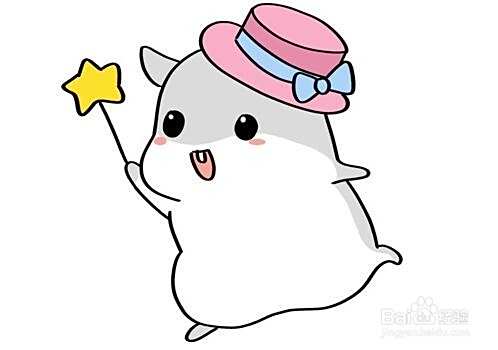 最后把仓鼠的帽子涂成粉色和蓝色,这样仓鼠就画好了。