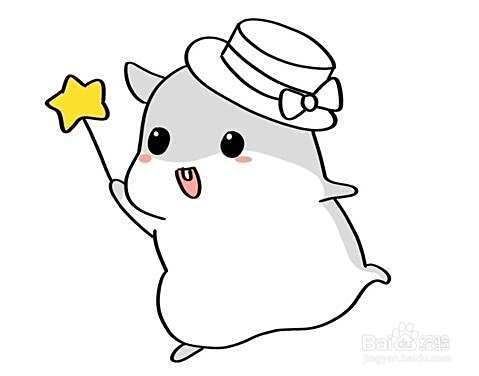 然后画出仓鼠的眼睛和嘴巴,画出一只手拿着五角星。