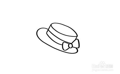 首先画出仓鼠的圆圆的帽子,帽子上面画一个蝴蝶结。